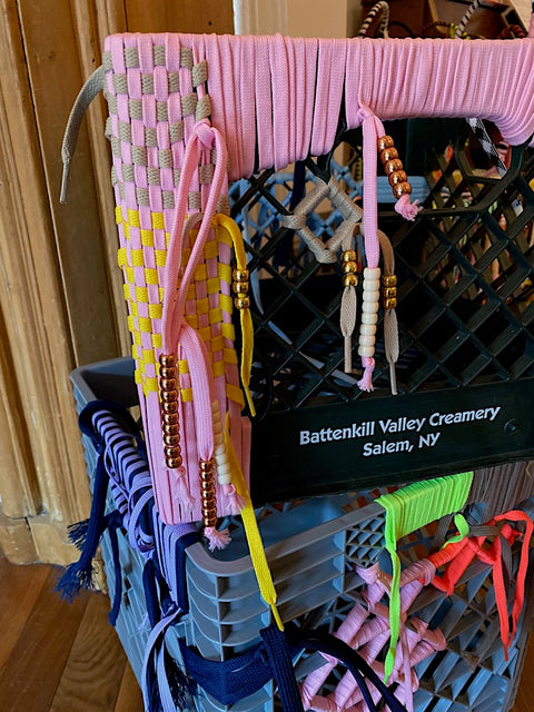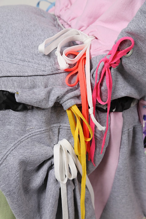 Camella Ehlke: HEY WHAT’S UP? is the debut collection of nineteen chairs featuring wearables sewn and weaved with overstock fabrics and recycled garments. Working with found and donated furniture, Ehlke stitches an inventive group of playful characters born out of her ethos for sustainability, community, and humor. The artworks demonstrate a unique perspective of integrating streetwear language into soft sculptural forms and blur the boundary of functional vs. nonfunctional.
